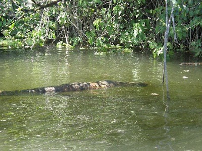 Sverre var utkikk, og håpet også å få se en aligatorer eller to i vannet i vannet. Her skulle finnes opptil 7 meters eksemplarer.......... Plutselig kom dette eksemplaret sigende mot oss i vannet!
